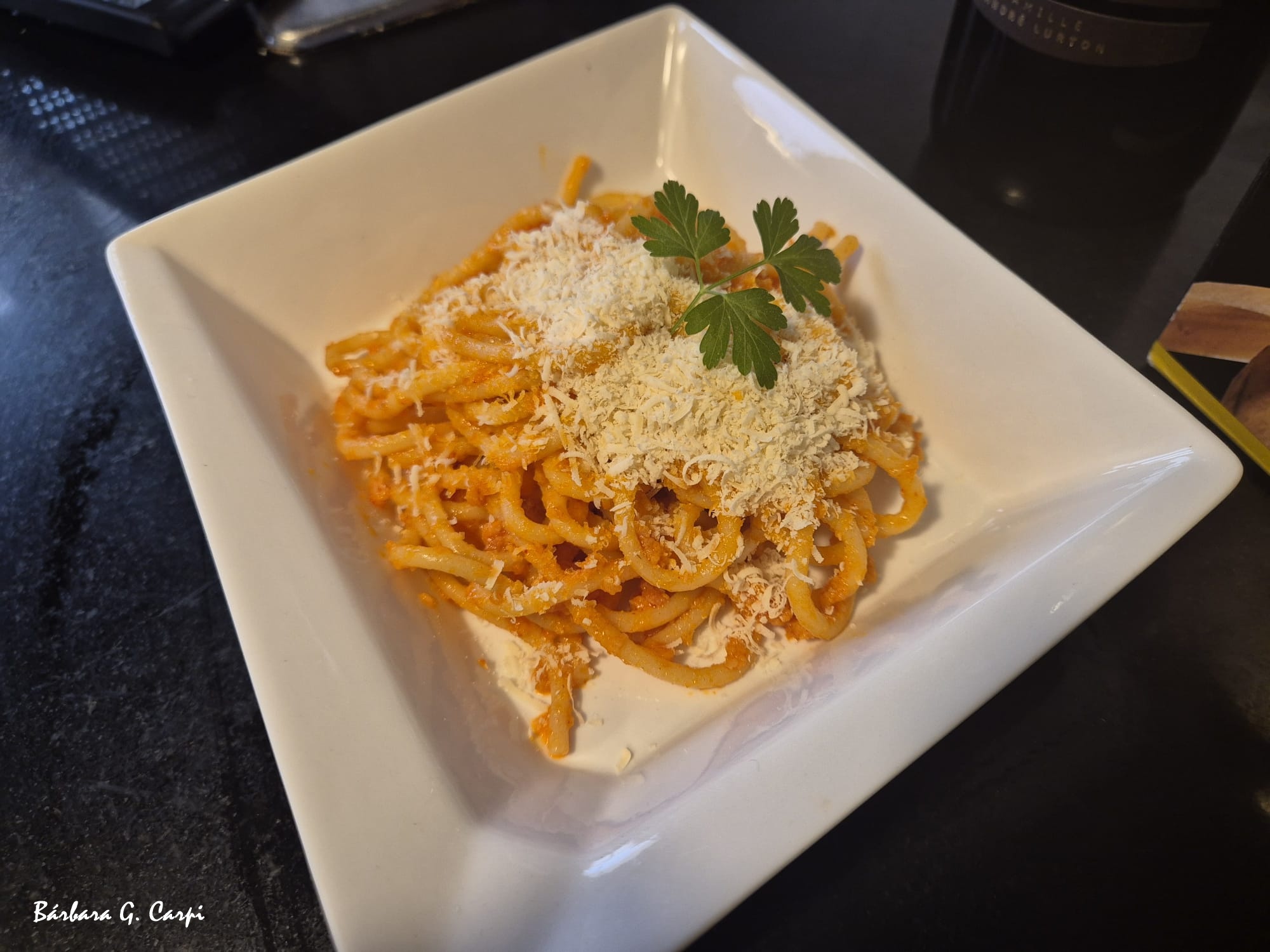 Ingredientes: tallarines o espagueti, sobrasada ibérica, queso de Mahón reserva Mercadal, 1 botella de Chateau Bonnet, réserve Bordeaux, 1 hoja de laurel, 1 cebolla picada, sal y pimienta negra molida (optativo).