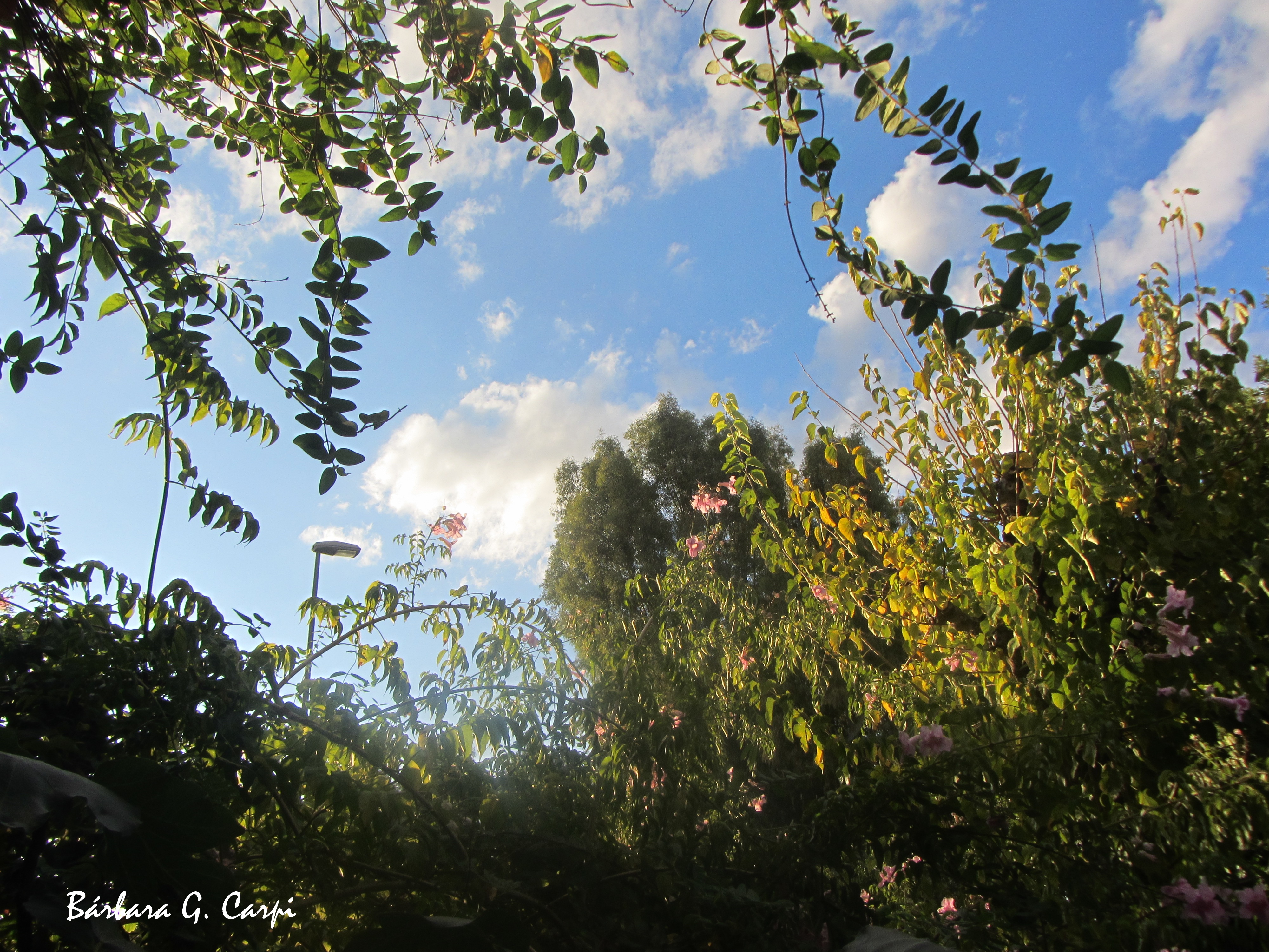 Las nubes, esponjosas como algodón de azúcar, adquieren a veces formas caprichosas y jugar a «ver» figuras es divertido y entretenido. Este no era el caso, pero ellas flotaban sobre un azul limpio, casi velazqueño, que contrastaba con el verde de los árboles y el dorado de las moreras en otoño.