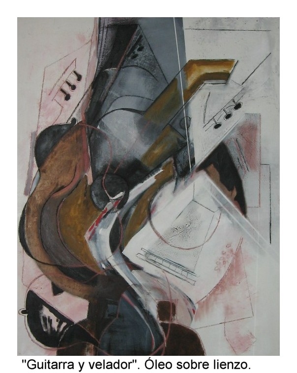 Bárbara Carpi: Guitarra y velador. Óleo sobre lienzo. Foto: Bárbara.