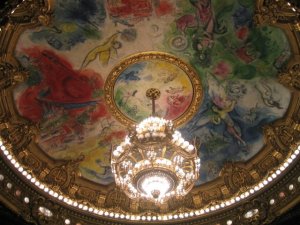 Siendo presidente de la República Francesa el General de Gaulle se encarga al pintor bielorruso Marc Chagall, a través del entonces ministro de cultura André Malraux, la decoración del plafón de la Ópera Garnier de París. Esa fue ciertamente una decisión bien tomada. Cuando en semipenumbra se contempla la extraordinaria araña que ha ido bajando poco a poco para admiración de todos, pero sobre todo para los estudiantes que, en el gallinero -y qué gallinero-, contienen el aliento; entonces, libre de impedimentos, se puede contemplar el plafón poblado de compositores y de personajes de conocidas obras operísticas; pero eso es lo de menos, lo realmente interesante es el mundo de ensueño al que nos traslada siempre Chagall. Y si la ópera en cuestión dura tres horas y no es de las favoritas, pasear por el techo de la mano de esos pinceles merece la pena sin lugar a dudas.