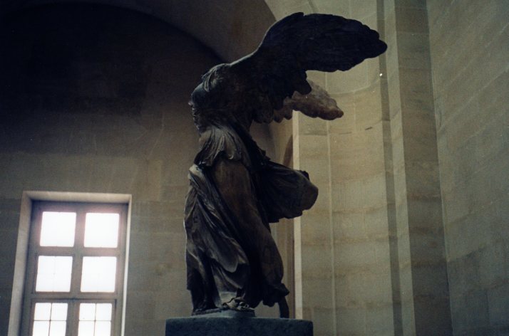 La «Victoria de Samotracia» fue descubierta en la isla griega de Samotracia en 1863 (Samothraki, en griego). Se cree que fue creada hacia el 190 a. C. La belleza de los pliegues de la túnica y el elegante movimiento de las alas hacen de esta «niké» sin cabeza una de las esculturas más hermosas del museo y una de las más conocidas junto a la «Venus de Milo».