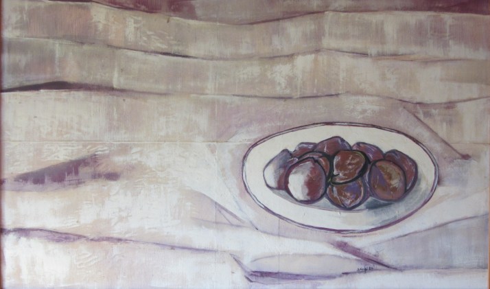 En 1987 hice este particular homenaje A Zao Wou-Ki en el que unía un plato con ciruelas sobre un fondo con transparencias al modo del pintor chino. Con este cuadro quise sintetizar esa época inicial en el que Wou-Ki buscaba su camino. Las ciruelas Cézanne y el fondo Wou-Ki. El cuadro se expuso en la Galería Granero de Cuenca en 1987. Una exposición becada por las Juntas de Castilla-La Mancha y la Comunidad Autónoma de la Región de Murcia.