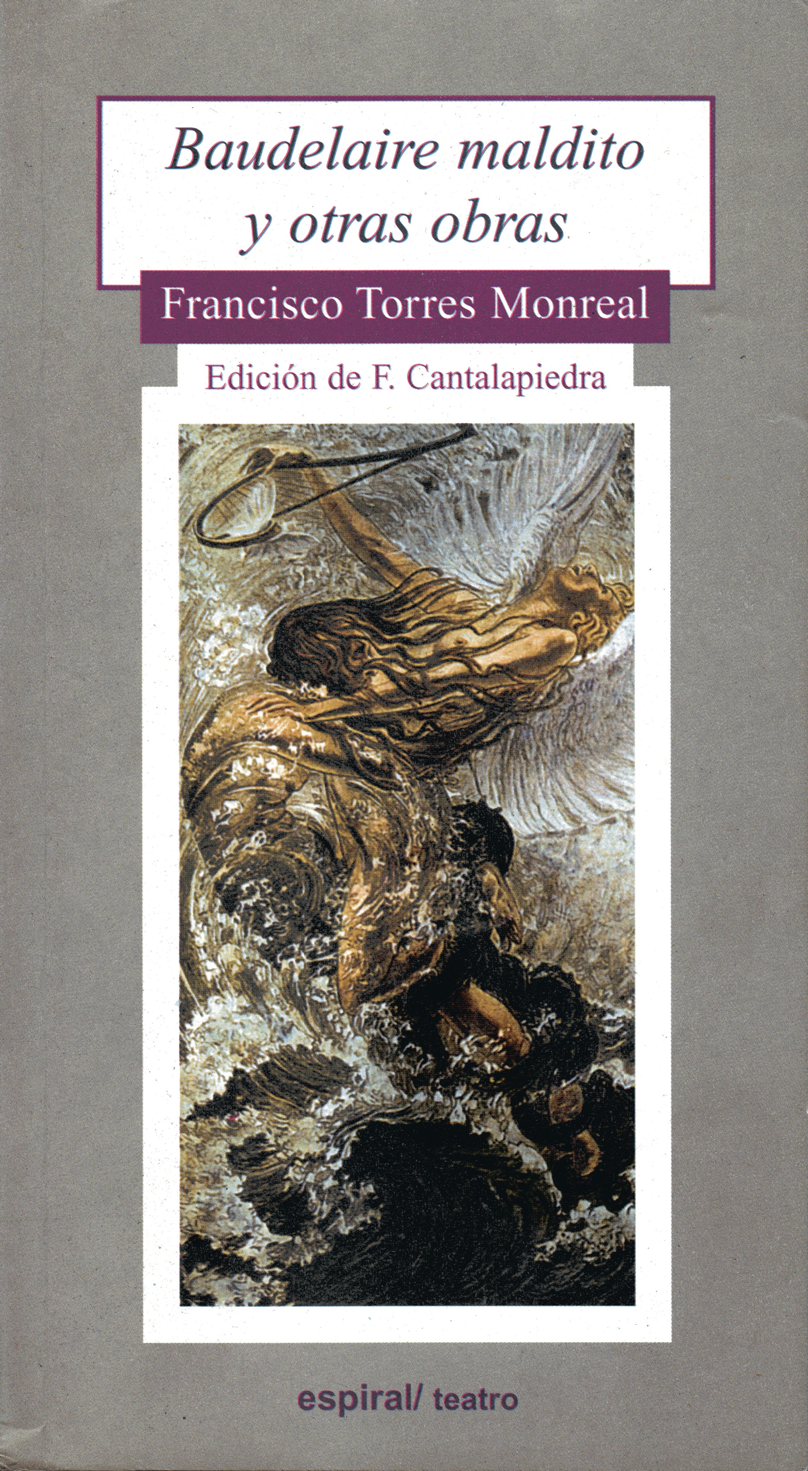 Francisco Torres Monreal, catedrático de francés de la Universidad de Murcia, traductor, dramaturgo, crítico de reconocido prestigio internacional y voz autorizada como conocedor de las últimas tendencias teatrales, es el autor de «Baudelaire Maldito y otras obras». Me ceñiré a «Baudelaire maldito» y quiero reproducir lo que se recoge en la contraportada del libro sobre esta obra de teatro: