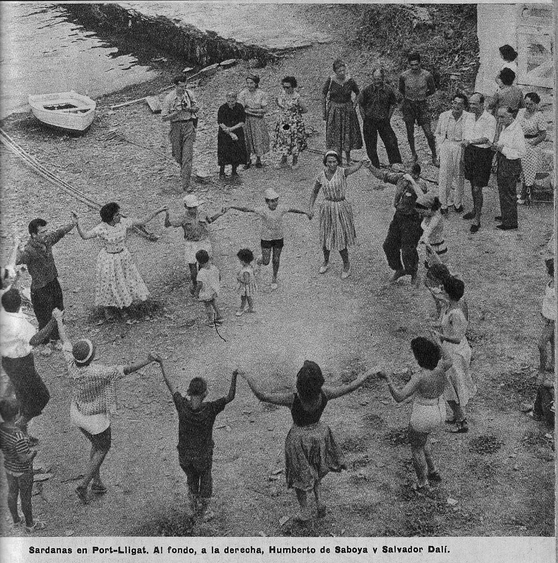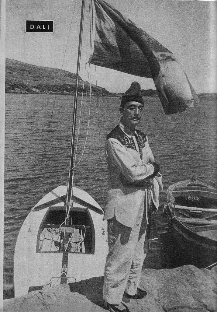 Pero además Dalí ejerció de cónsul o embajador de su tierra, anfitrión de todas las personalidades que acudían a su reclamo desde poetas, hasta pintores, aristócratas… Y existen documentos gráficos que detuvieron esos instantes, con García Lorca, Paul Eluard… : como testimonio estas dos fotos no muy conocidas y cuya fecha desconozco con exactitud pero que debía ser de alrededor de los años 60. ¡ Y qué bien se lo pasó!
