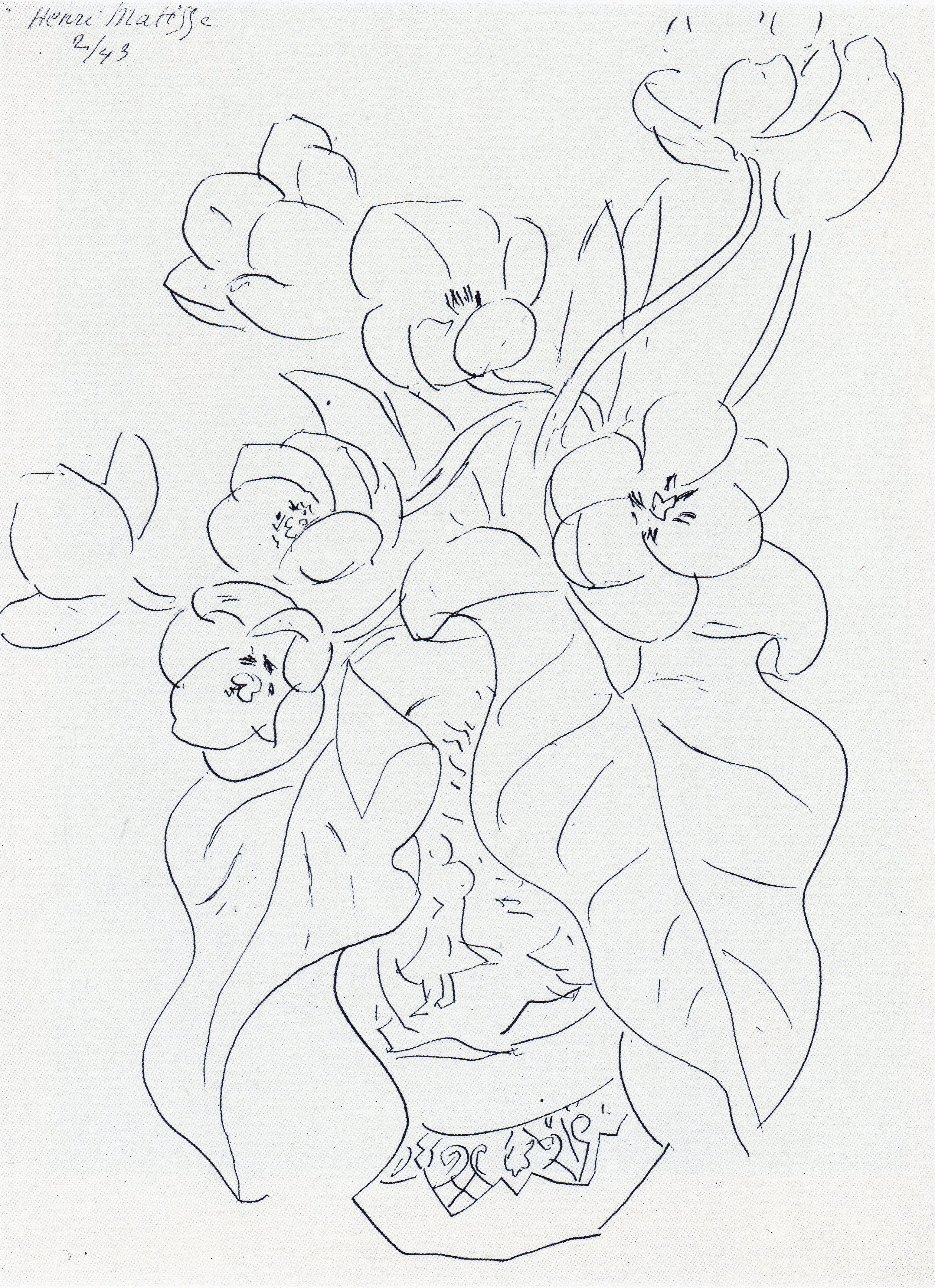 Matisse, «Tulipanes en un jarrón Chino». 1943. Tinta china sobre papel (52 x 40). Museo de Bellas Artes Pushkin, Moscú.