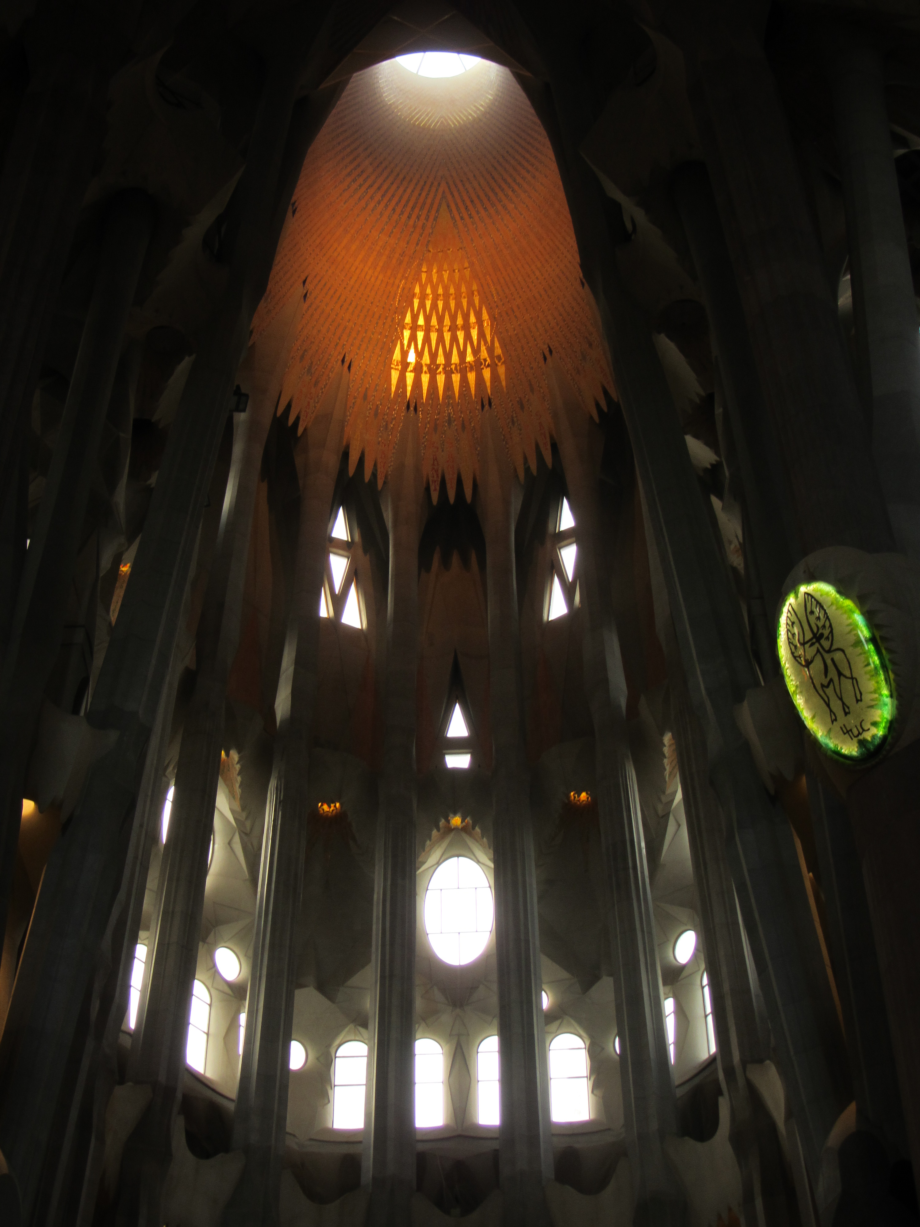La luz del interior, modulada por las distintos vidrieras, ofrece una sinfonía de colores, un arco iris en azules, verdes, violetas…; y para escuchar, ver y sentir esa melodía gaudiana hay que volver a sentarse para dejarse inundar por el aura del genio catalán y sentir su espíritu en un abrazo inolvidable.