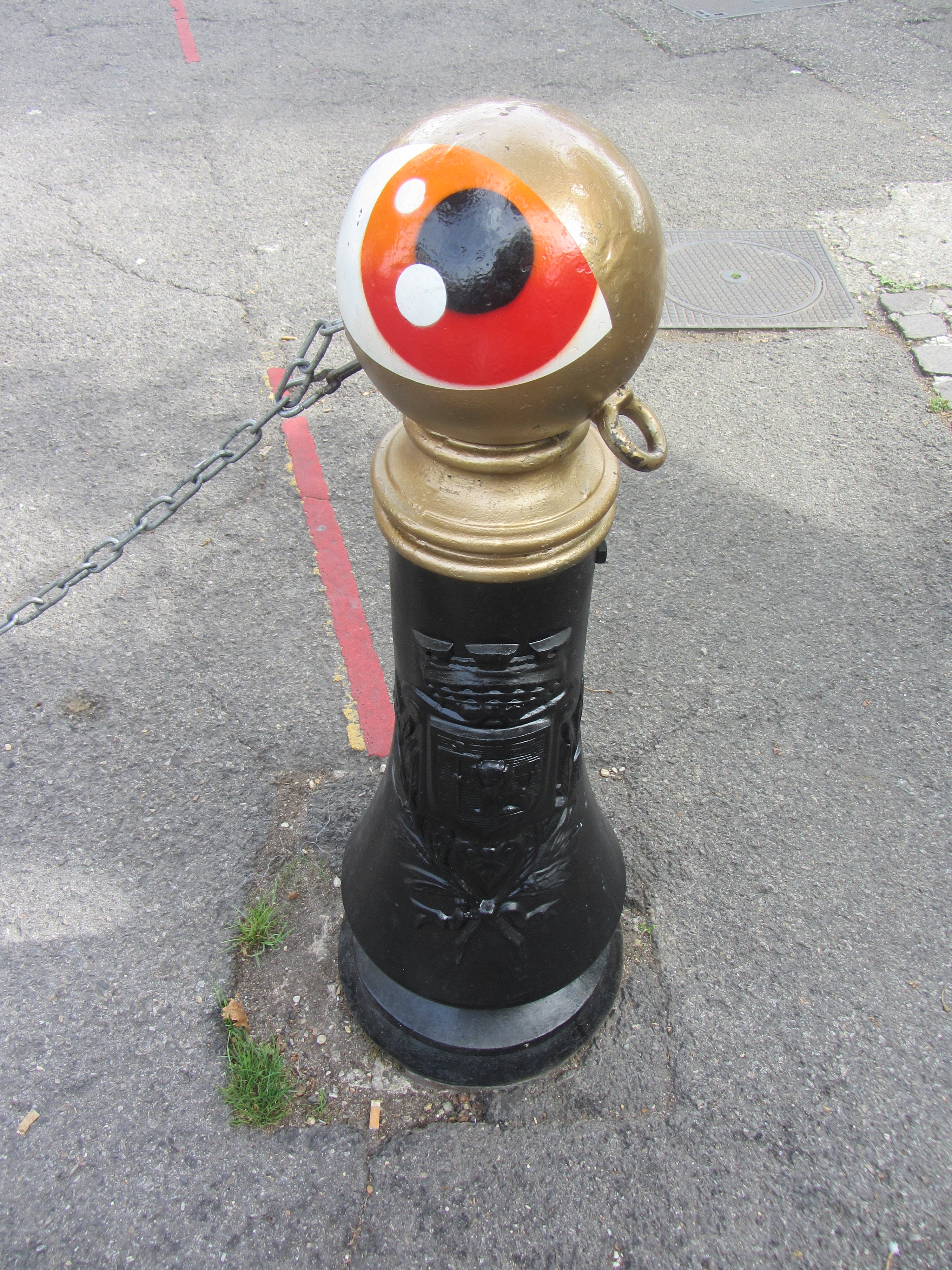 El pulso de una ciudad se toma en la calle, para ello hay que ir con los ojos bien abiertos y, mira por dónde, nos topamos con estos bolardos que rodean el Teatro de Arles, ojipláticos ellos; luego fuimos viendo más en distintos lugares y nos preguntamos por la autoría de ese asombro de bolardos. A la fecha de hoy seguimos sin conocer la identidad de quien tan bien avisa de todo lo que uno se puede encontrar por este bello lugar.