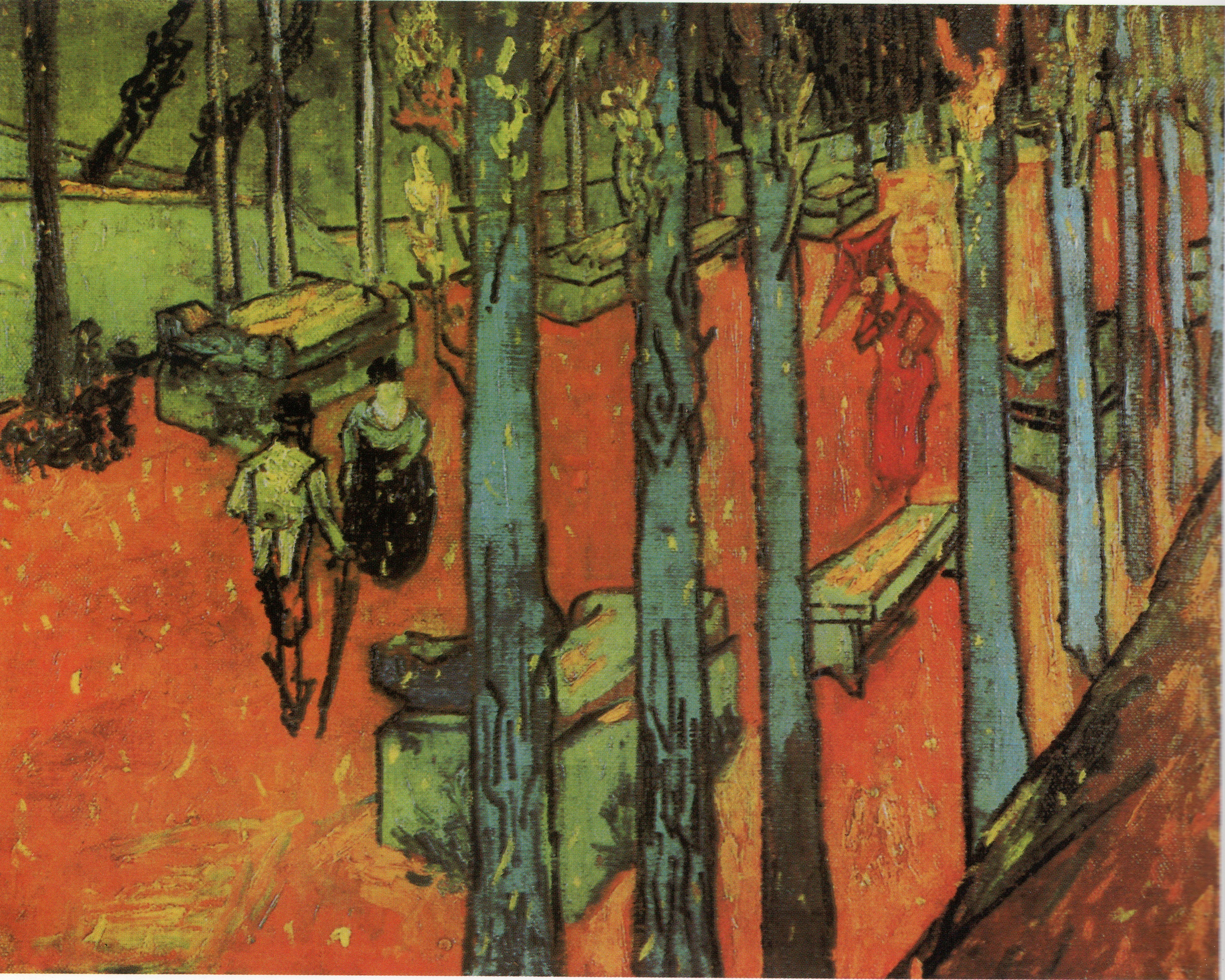 Con perdón, a Gauguin creo que le salió un poco el tiro por la culata en sus pretendidas «lecciones» a Vincent en esos años, porque, a pesar de todo, van Gogh está totalmente presente, en mi opinión, en el cuadro «Les Alyscamps» de Gauguin.