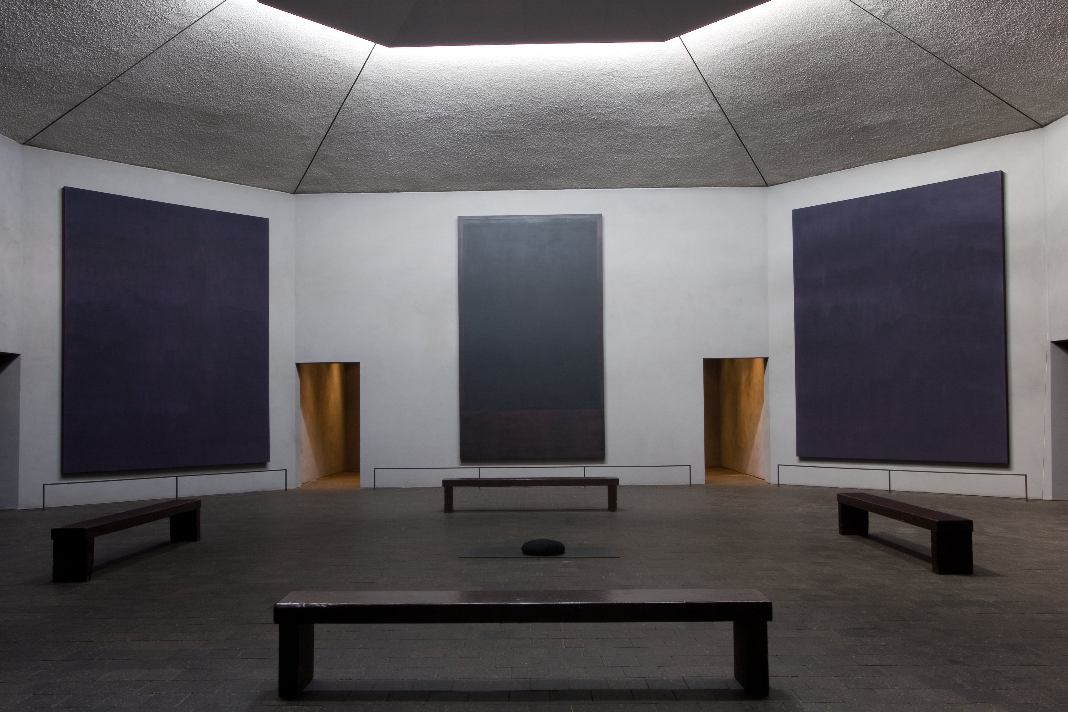 Sorprendente esta capilla ecuménica, lugar de meditación para todos, creyentes de cualquier religión y no creyentes, lugar de celebración de actos en defensa de los derechos civiles y culturales. El arte de hoy al servicio del hombre en un lugar de paz; igual que la capilla que Matisse decorase en S. Paul de Vannces, en el sur de Francia (esta católica). Esta obra singular se debe al matrimonio Menil, franco-estadounidense, que huyó del nazismo y se establecieron en Houston, Estados Unidos. John y Dominique de Menil tuvieron la idea de crear esa capilla no confesional para la cual le encargan al pintor 14 obras; desde el principio Rothko acepta, con la condición de participar en la construcción junto al arquitecto Philip Johnson, sustituido después por Howard Barnstone y Aubry Eugene.