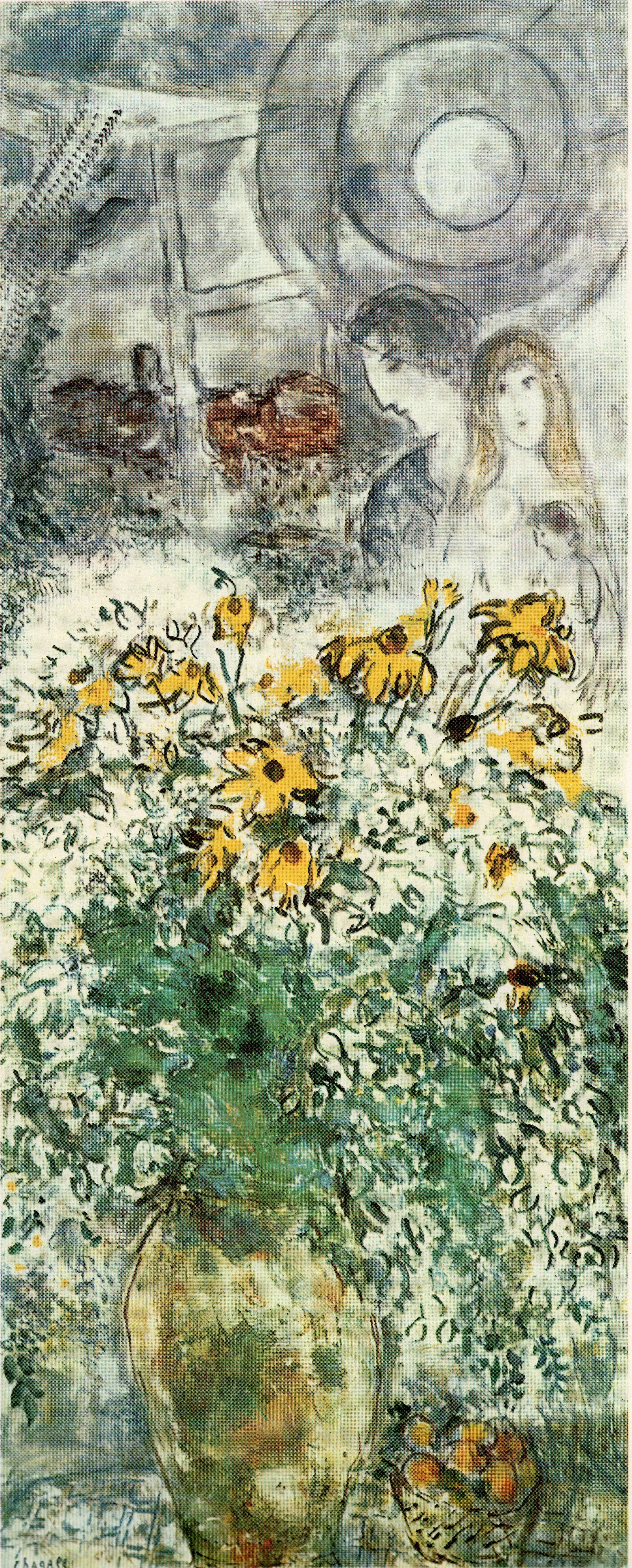Marc Chagall: «Los girasoles». Óleo sobre lienzo, 147 x 60. 1955. Galería Maeght, París.