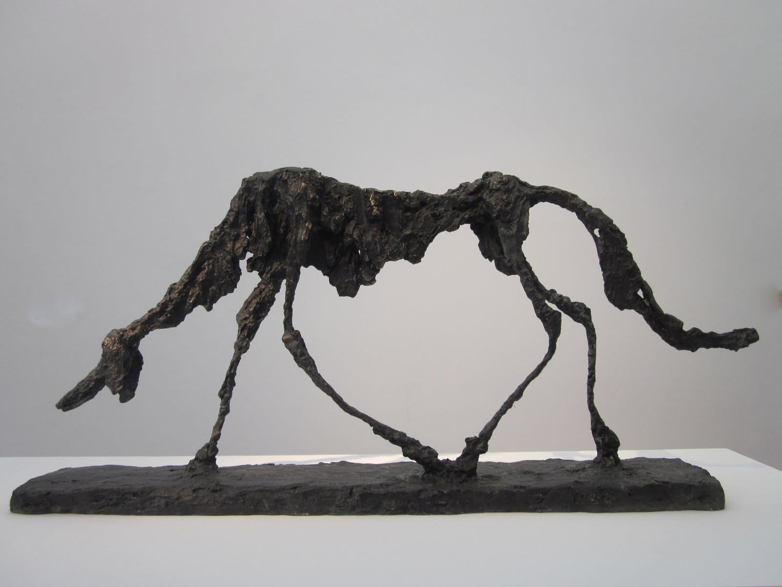 El gran artista suizo-italiano tiene su perro, como Picasso tiene su cabra (en sus diversas versiones). La superficie de sus esculturas parecen vibrar con el nervio de la vida; de forma irregular, como si pellizcara el barro, o con espátula pequeña sacando lascas, de la nada informe insufla el latido que nos paraliza por su realismo y nos admira por su enorme sentido de la percepción de lo sutil. ¡Genial ese perro!