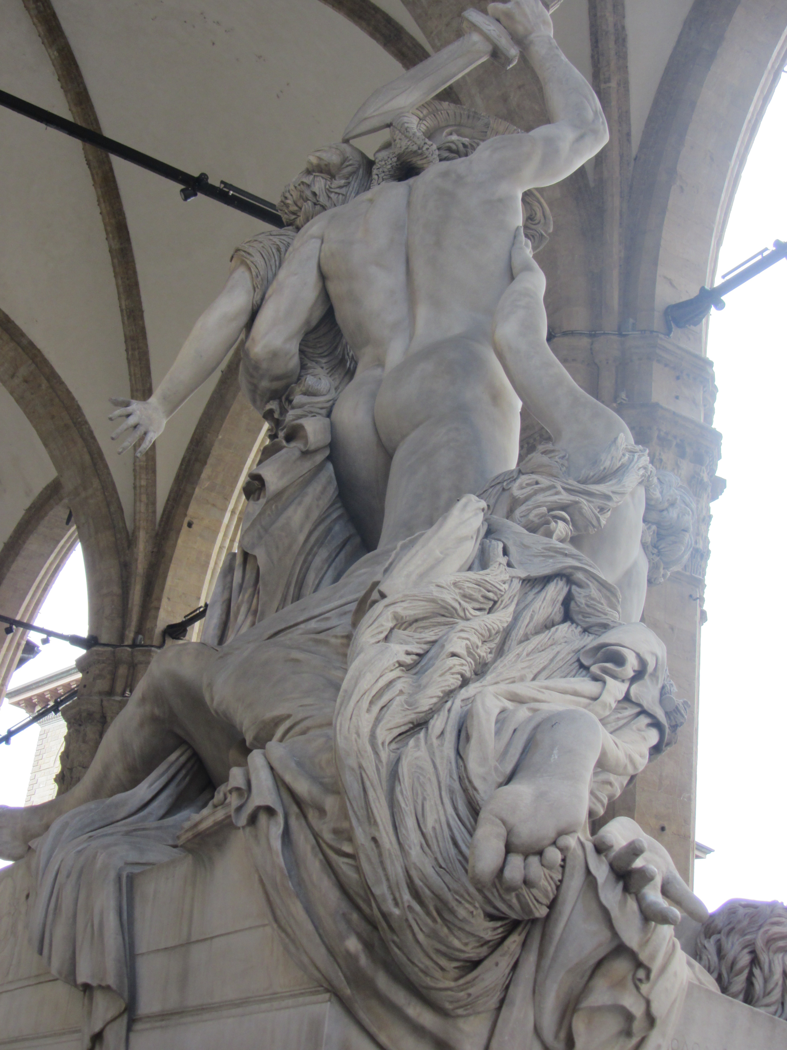 En la Loggia dei Lanzi, que toma su nombre de los lanceros, guardia personal de Cosme I, diseñada por Orcagna, «El rapto de las sabinas» de Giambologna de 1583 nos admira por los pliegues de la tela, por la admirable disposición de los volúmenes y «el barroquismo» de las formas.