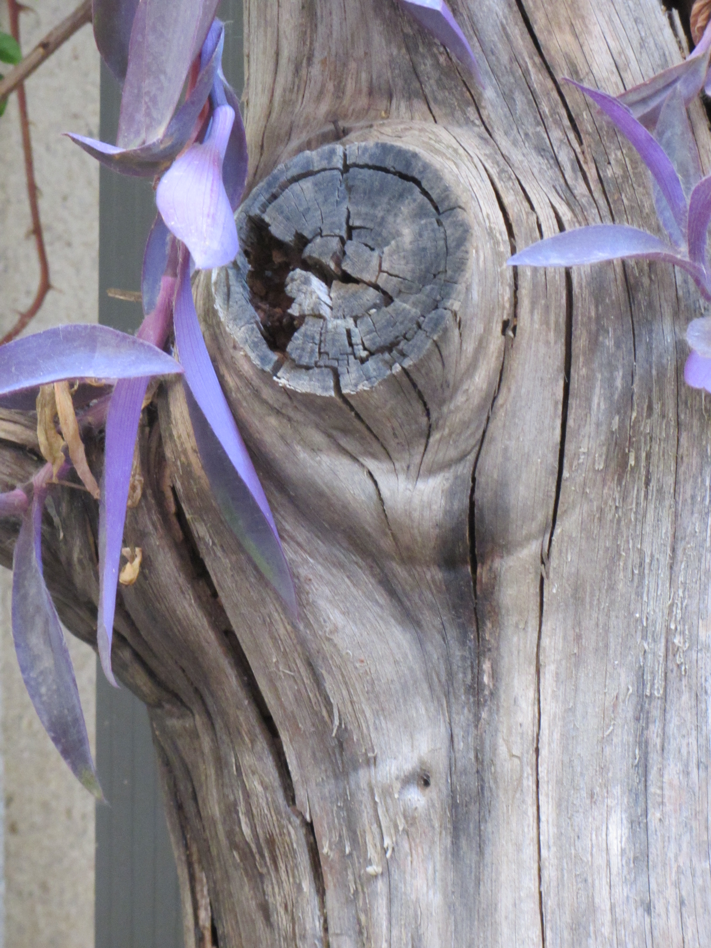 Los nudos de la madera son como señales de tráfico, redondas ellas, para que las plantas se paren justo ahí o para seguir creciendo a su aíre según les venga en gana: son, la verdad, bastante anárquicas.