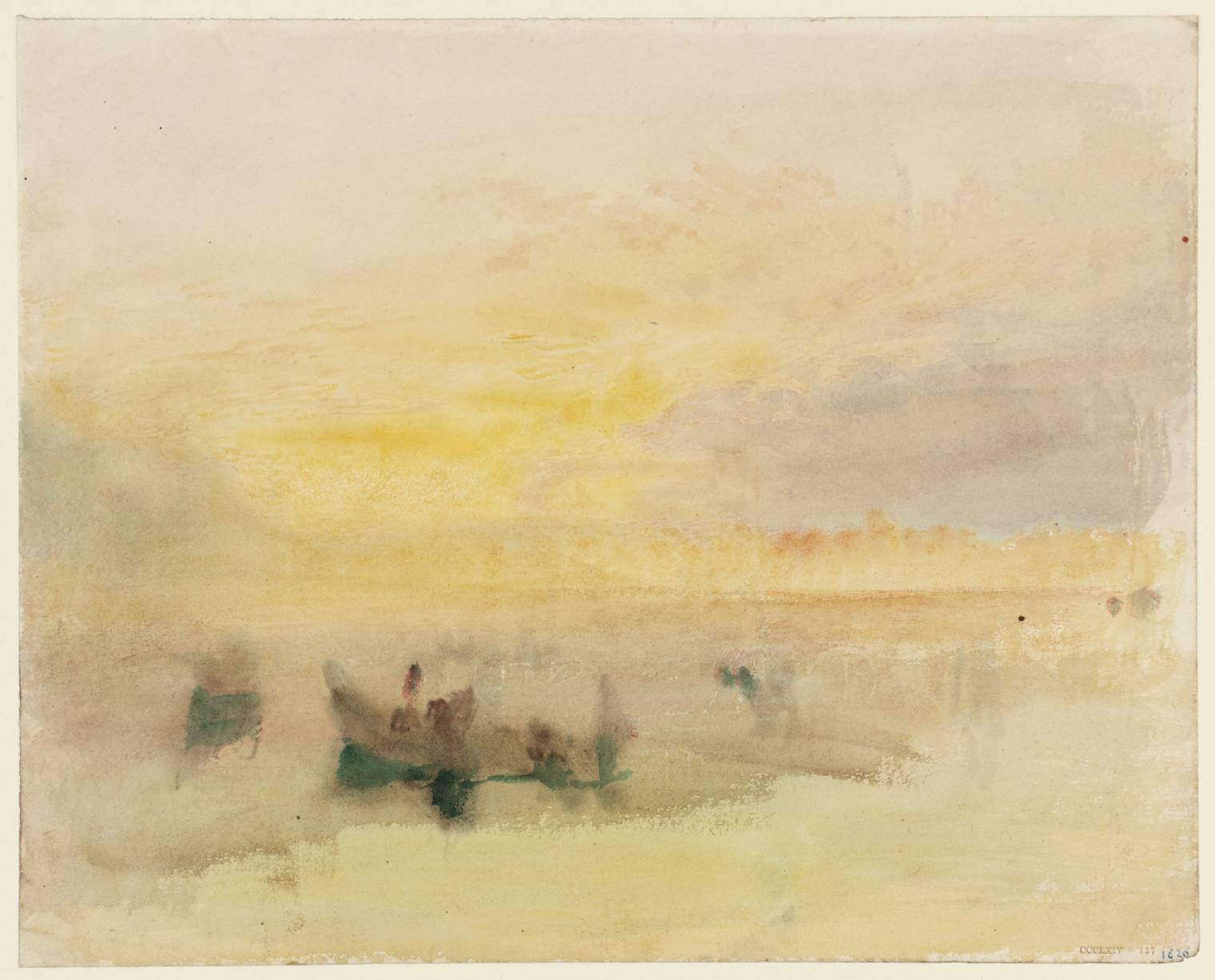 W. Turner: «Barcos en la laguna, cerca de Venecia» 1840. Acuarela sobre papel, 24 x 30. Tate Gallery, Londres.