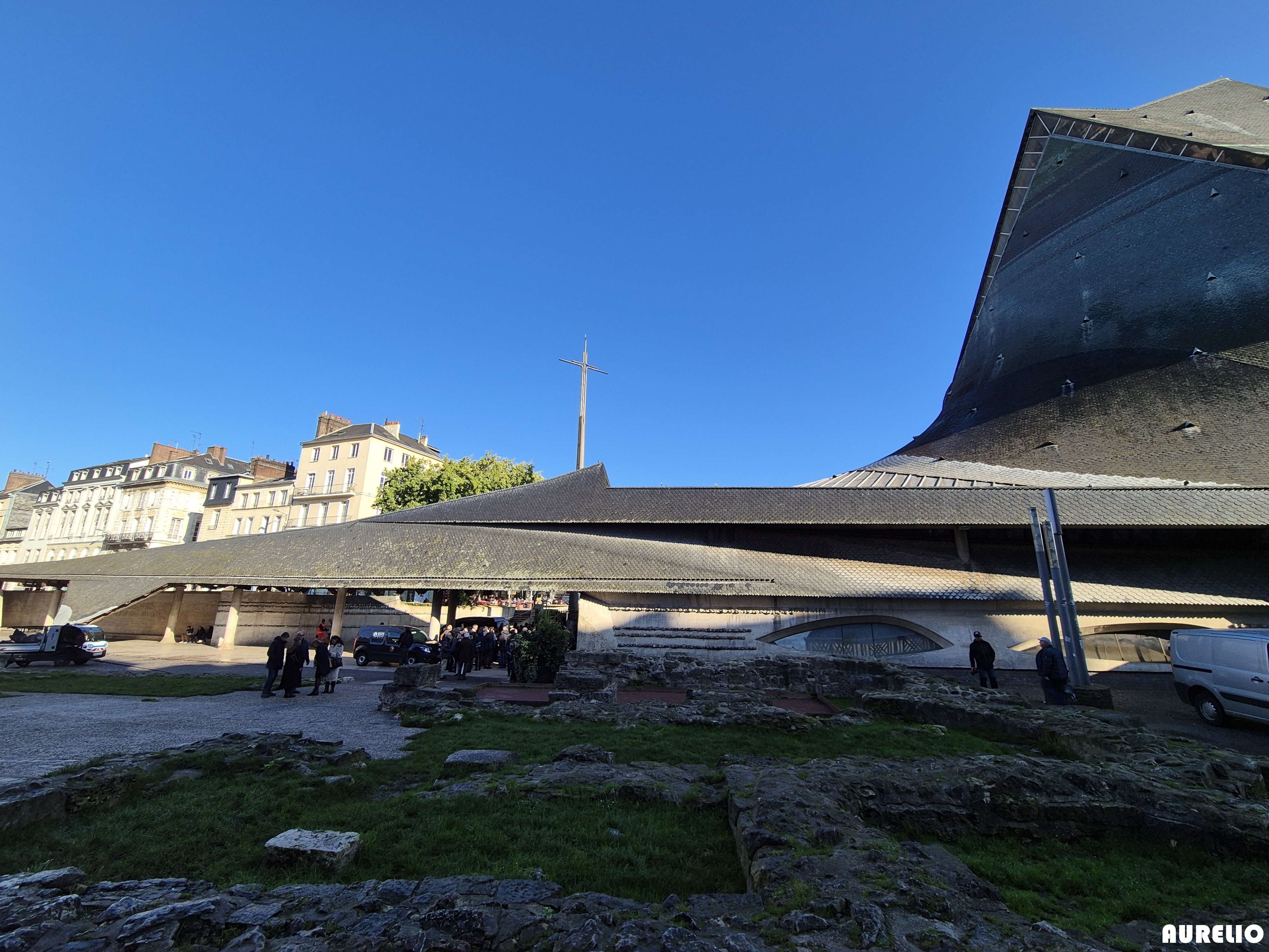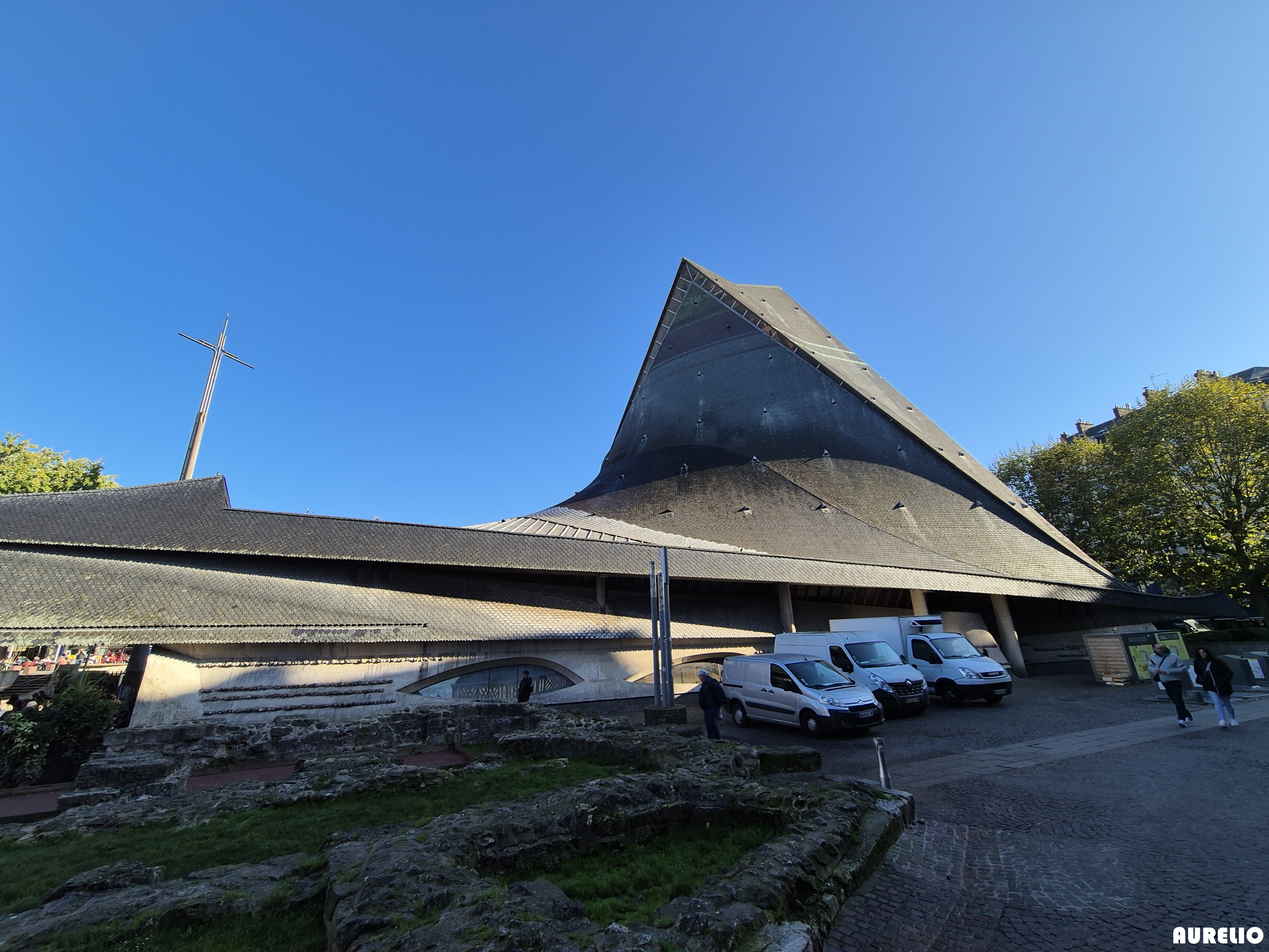 La actual iglesia dedicada a Santa Juana de Arco en Rouen se construyó en el centro de la plaza del antiguo mercado, donde fue quemada en la hoguera. Se terminó de construir en 1979 y fue diseñada por el arquitecto Louis Arretche. Las amplias curvas de sus estructura evocan las llamas que la consumieron y como un barco volcado, al igual que otras muchas de las iglesias cristianas. La quemaron tres veces para que no hubiera dudas de hacer cumplir la cruel sentencia. La joven campesina de 19 años, llamada «la Poucelle», la doncella, se puso al mando de 4000 hombres en su intento de expulsar a los ingleses; apresada, fue juzgada y condenada por hereje a morir en la hoguera el 30 de mayo de 1431. En 1456 un tribunal inquisitorial autorizado por Calixto III examinó el juicio, anuló los cargos en su contra, la declaró inocente y la nombró mártir.