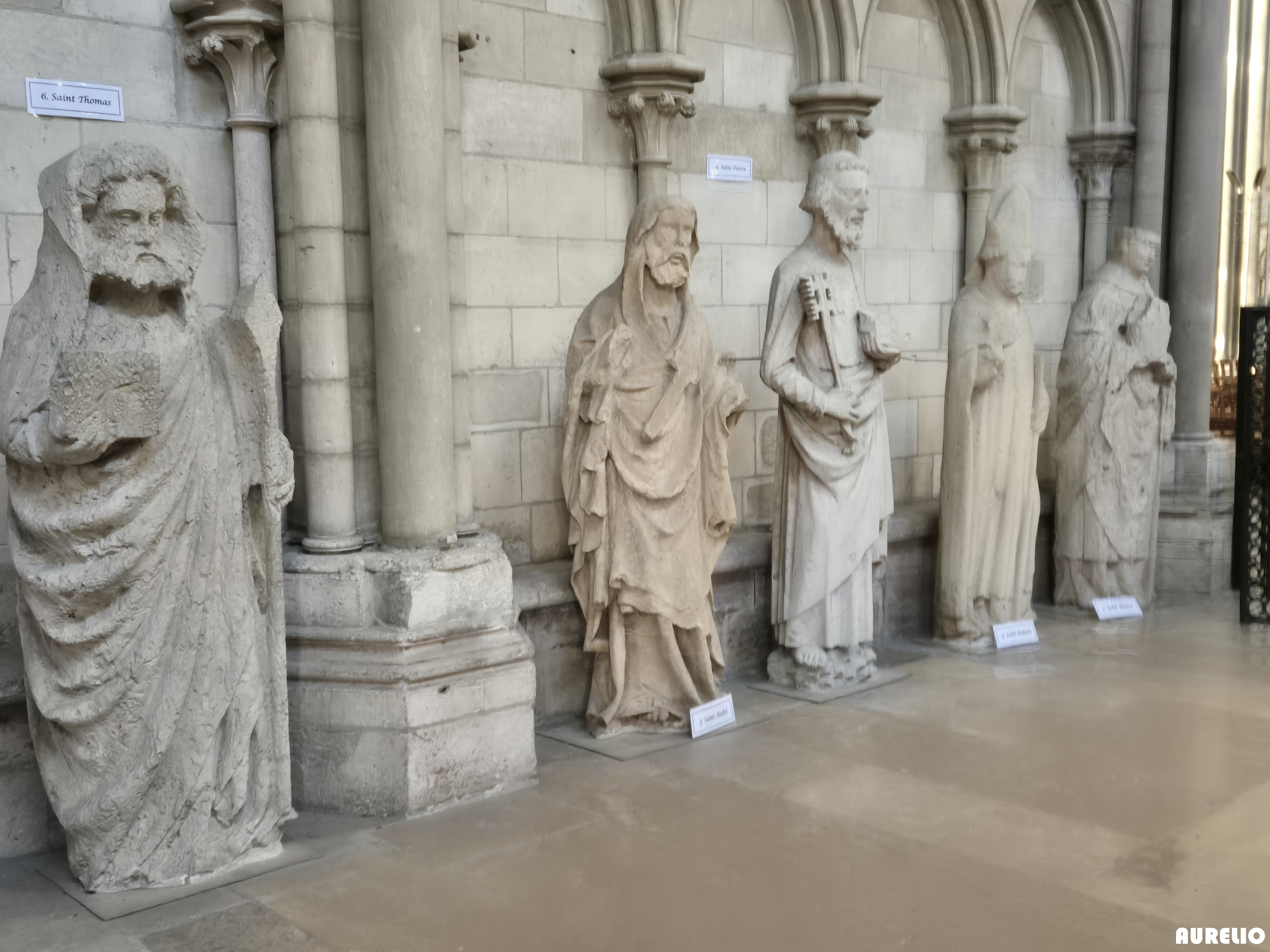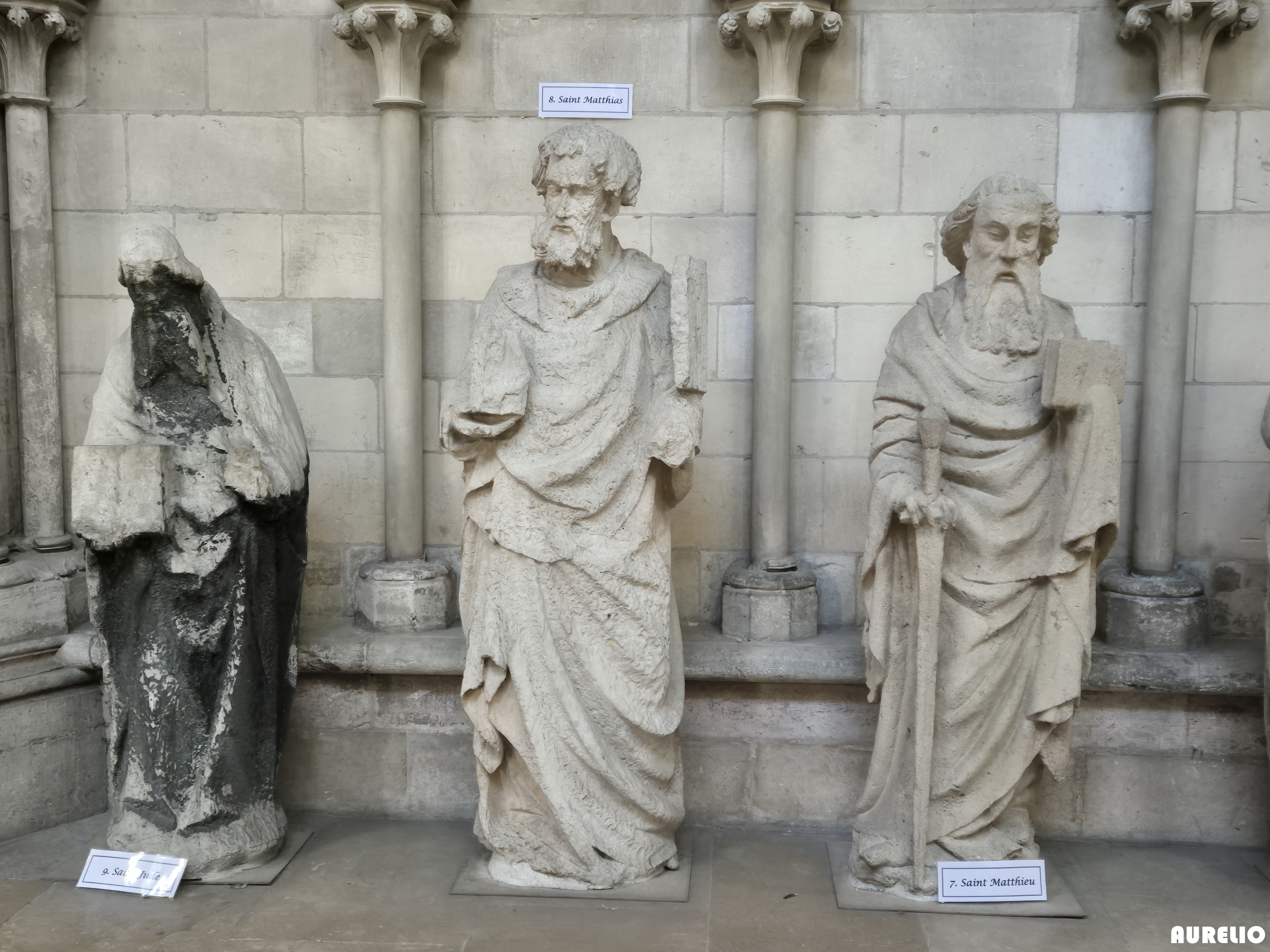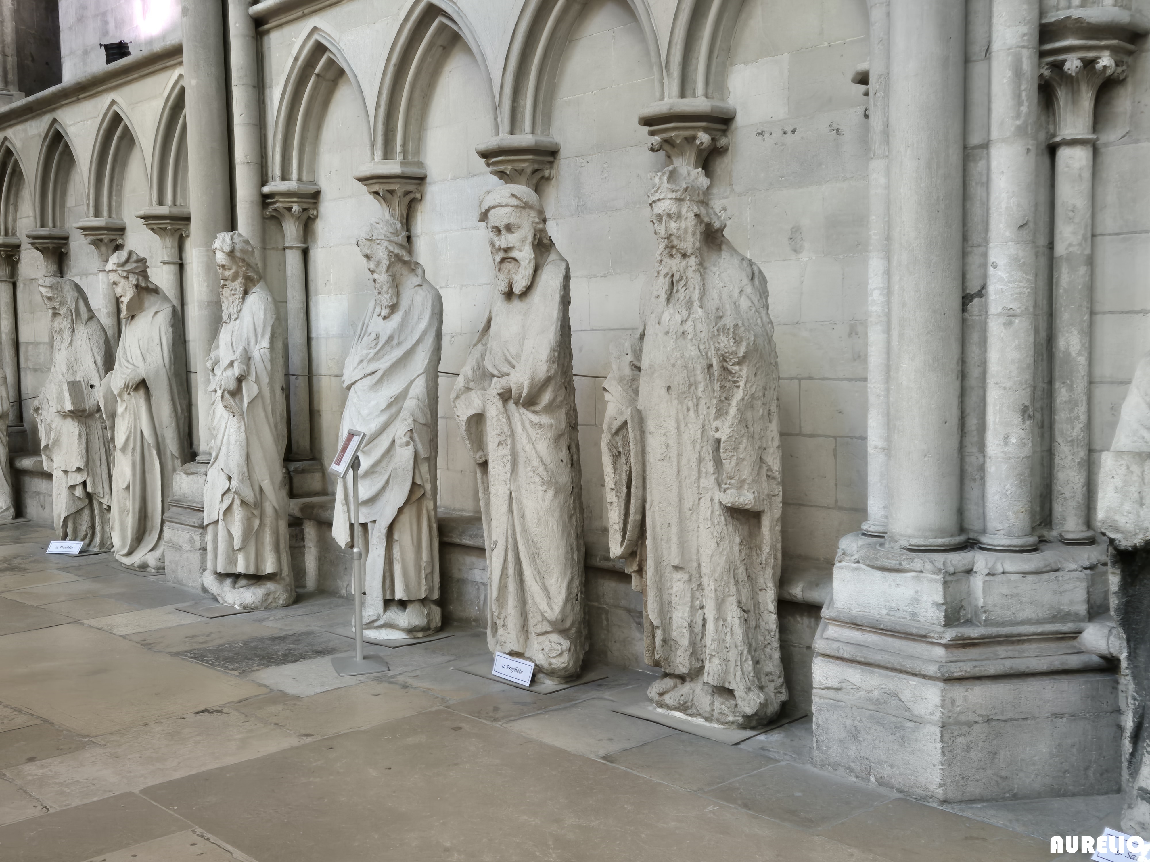 En el deambulatorio de la catedral de Rouen nos encontramos con las estatuas que estaban en la fachada de dicha catedral cuando esta fue bombardeada en 1944 por los aliados. Delante de cada una de ellas hay una cartela donde figura el nombre del santo correspondiente. Son todas las que se salvaron de dicho bombardeo durante la Segunda Guerra Mundial.