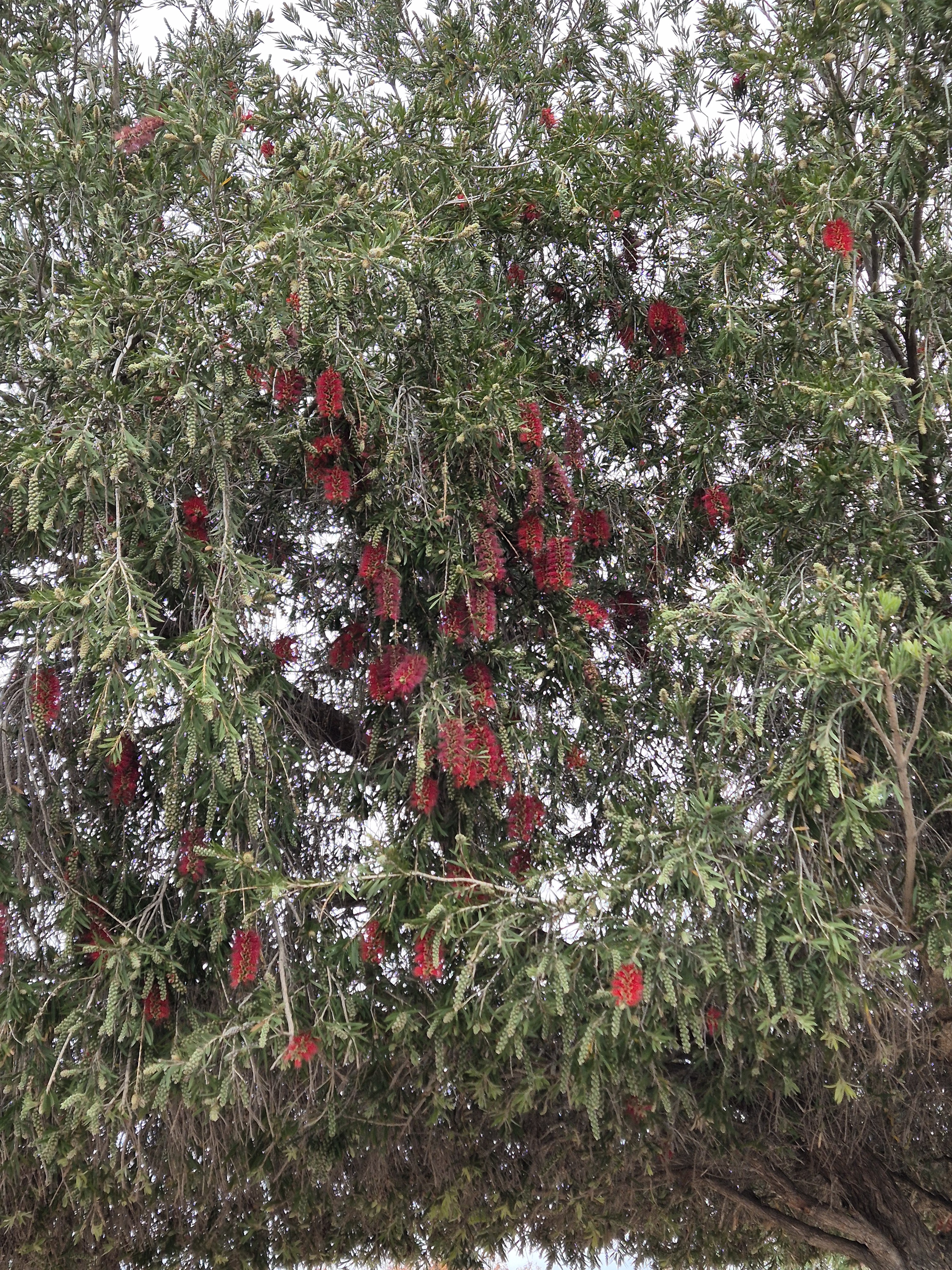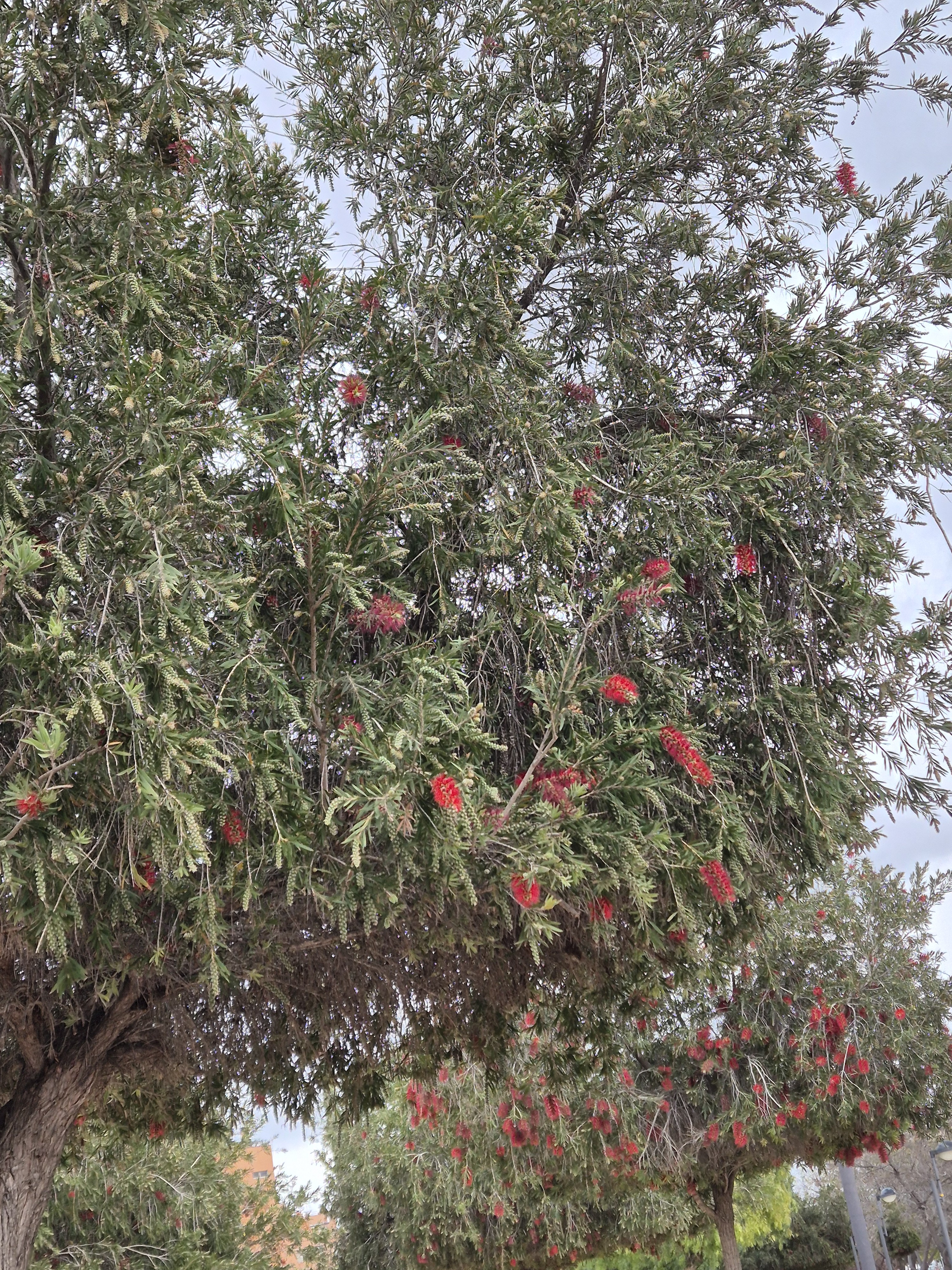 Si usas la foto para la consulta en PlantNet probablemente te diga que se trata de un ejemplar de la família Melaleuca (viminalis, rugulosa, citrina, etc), pero no facilita ningún nombre común. De nada! 😉
