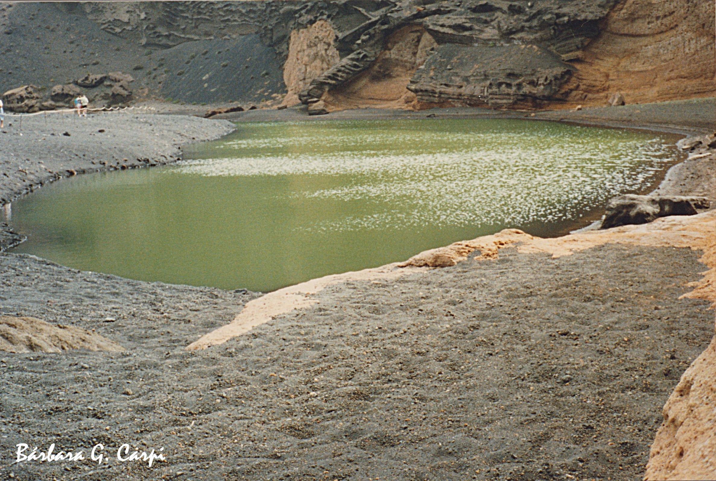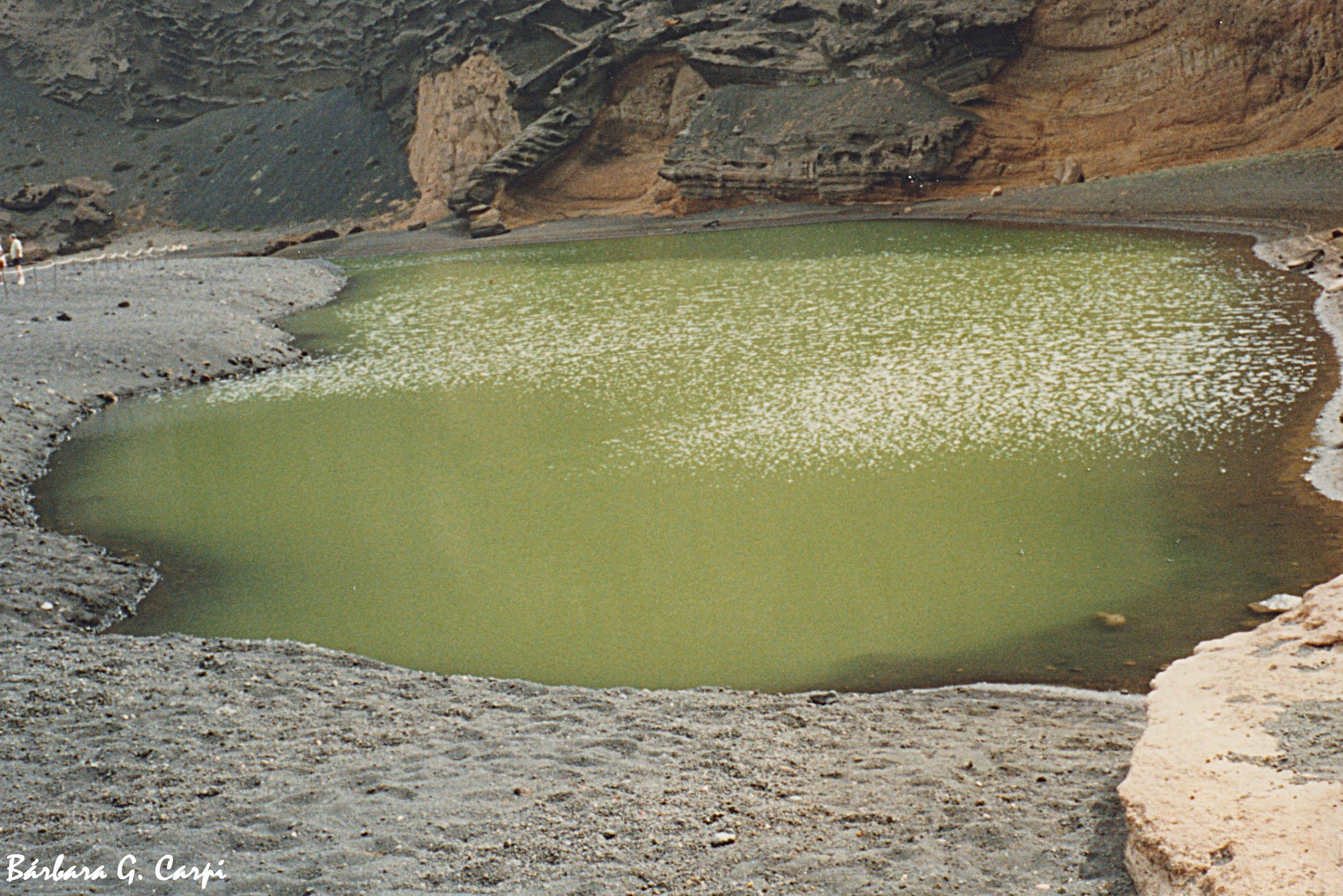 La isla de Lanzarote en el Archielago Canario es de una belleza fascinante. El llamado Charco Verde está situado en el municipio de Yaiza, en el sur oeste de la isla. Se trata de una laguna litoral incluida en el parque natural de los Volcanes junto a la población de El Golfo y dentro del parque natural de Timanfaya. El termino de los clicos hace referencia a una especie de bivalvos comestibles muy sabrosos. El adjetivo verde proviene del color de sus aguas que adquieren una tonalidad verdosa debido a un tipo de alga de la especie Ruppia maritima que habita en su interior, además del azufre que contienen sus aguas. Las otras fotos corrsponde a la playa cercana a la laguna. El Charco ha sido el escenario de varias películas entre las que se encuentran «Los abrazos rotos» de Almodovar con Penelope cruz, en el 2009 y «Hace un millón de años» con Don Chaffey con Raquel Welch en 1966 entre las más conocidas.