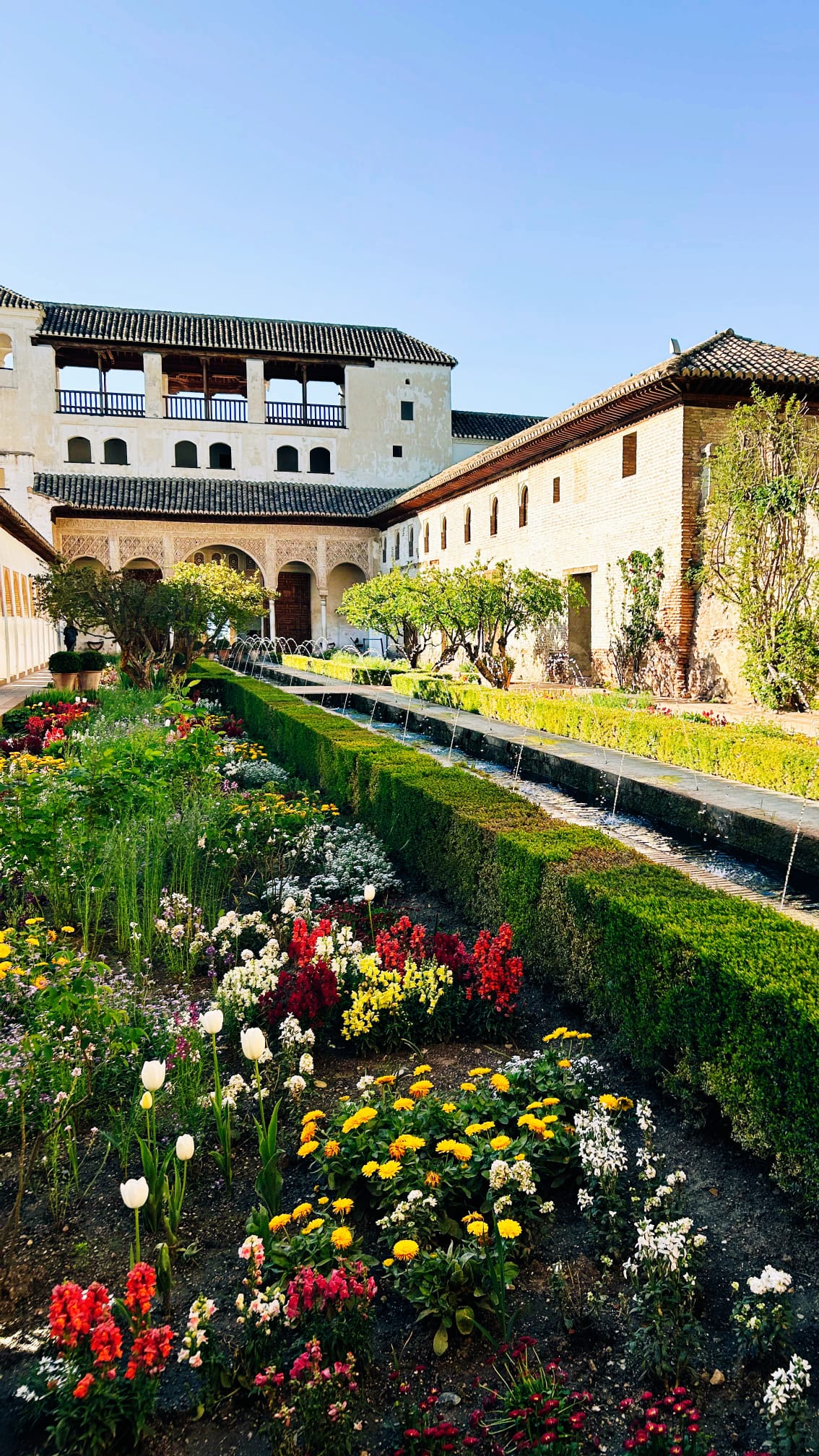 El murmullo del agua, los setos recortados, los tulipanes, los dientes de león, los tagetes, la arquitectura nazarí, todo se confabula para crear lo más parecido al paraíso en la Tierra. Los árabes sabían mucho de eso y nos dejaron una cultura y unas obras de arte que hacen de Granada una ciudad imprescindible. Dicen que Boadil el Chico lloró al tener que abandonarla y no era para menos. Conocí, por casualidad, en París a un profesor musulmán que decía sin el menor rubor que «algún día recuperarían Granada». Yo aluciné, pero menos mal que, a día de hoy, sigue siendo muy española. ¡Mil gracias, Noa, por esas fotos tan bonitas!