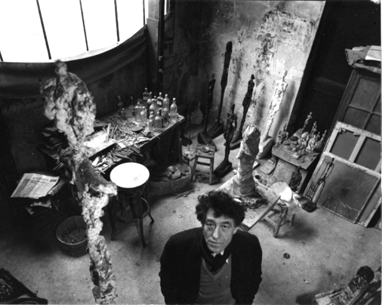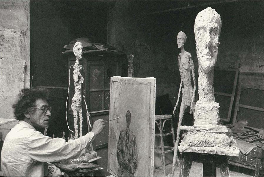 Giacometti en plena faena, pintando uno de sus retratos con esa técnica tan personal apoyada en un «rayado» con pinceladas finales que se superponen sobre otras borradas; y siempre buscando la esencia de la vida interior que se delata a través de la mirada. El ambiente de taller, rodeado el artista de esculturas y lienzos contra la pared, está captado a las mil maravillas.