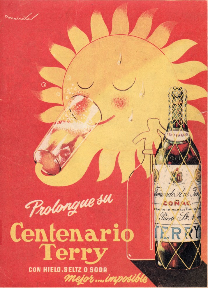 Un sol que suda la gota gorda en plena canícula veraniega… cuando el brandy se llamaba coñac en nuestra tierra. Un estupendo anuncio de la casa Terry emblema del Puerto de Santa María, un lugar para no perderse y donde pasar unas buenas vacaciones. Especialmente dedicado a los vejetes a fin de prolongar su centenario…