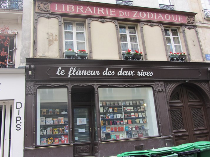 Desde le Boulevar Saint Michel, casi a la altura du Jardin de Luxembourg , un poco antes de llegar a la Place Rostand, arranca la larga calle que desciende hasta el corazón de Saint Germaine-des-Pres que disputó al Barrio Latino ser el centro de la intelectualidad cuando París era el centro cultural del mundo; bajando, bajando llegamos a la Place Danton, con el revolucionario subido a su pedestal -la rive gauche siempre fue «rojilla» y libertaria-. El eco de la época dorada envuelve Saint Germaine-de-Pres, que se reafirma en sus innumerables librerías, cafés, restaurantes. Estamos, para situarnos, en el barrio donde residía el todopoderoso Cardenal Richelieu y donde se hallaba el cuartel de los tres mosqueteros -que eran cuatro-. La calle Monsieur le Prince, además de estar situada en uno de los lugares más próximos a todo lo que a un enamorado del París más evocador de principio del siglo pasado puede desear, es un remanso de paz y tranquilidad. A modo de reflejo esta foto que nos cuenta de la actividad peripatética que los amantes del paseo, de los que hacen de esta necesidad la razón de su actividad cotidiana sin rumbo prefijado, dejándose ir por los bulevares, por las rues y por las ruettes según su corazón les lleve… Para estos seres andarines los franceses tienen un nombre: Les flâneurs. Breton, el papa de los surrealistas, reivindica la figura del flâneur. El nombre de la librería nos habla del paseante de las dos riveras del Sena. Julio Cortázar era, ya lo sabemos por sus obras, un flâneur de las dos riveras.