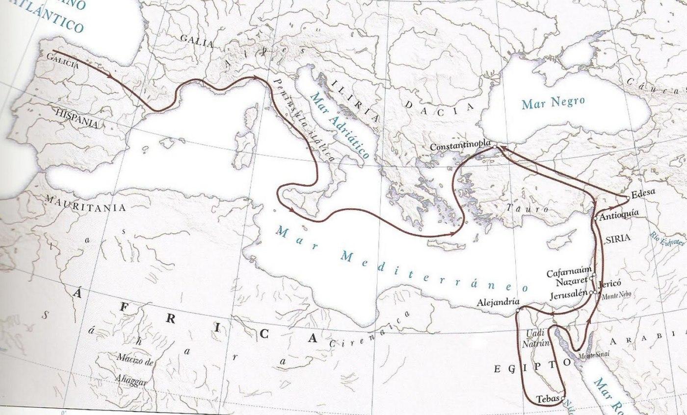 Mapa del itinerario que siguió desde Galicia a Jerusalén.